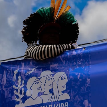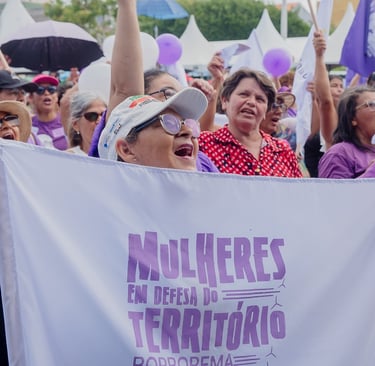 Ao longo da caminhada, as mulheres expressaram, por meio de cartazes, cantos e palavras de ordem, a defesa de um modelo de desenvolvimento que valorize os territórios, os saberes tradicionais e a produção de alimentos saudáveis.